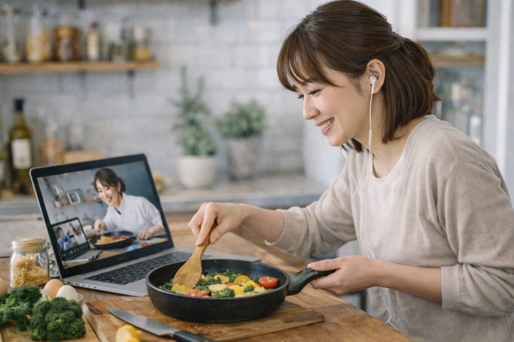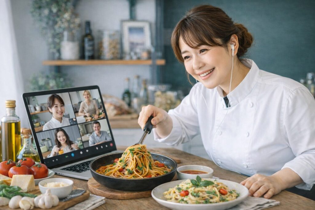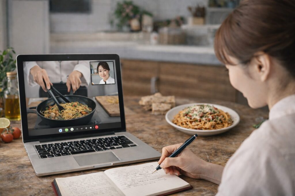 ビギニングクラスではオンラインで実際に料理を作りながら、